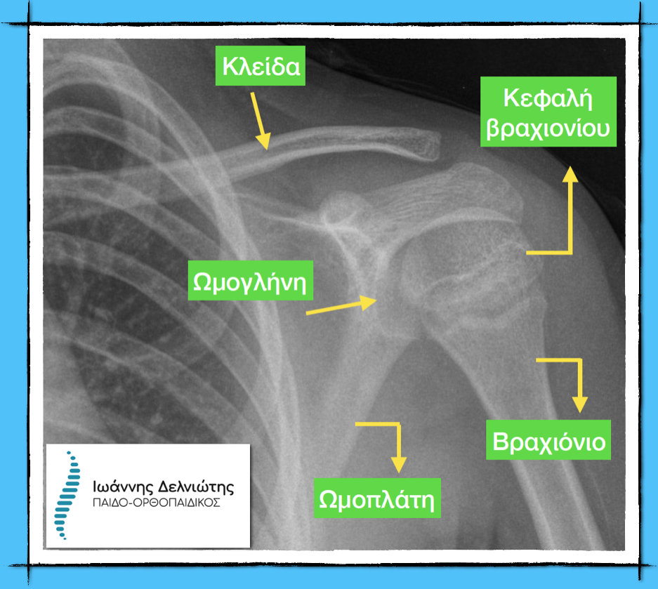 Η ακτινογραφία που θα απαιτηθεί είναι μία απλή ακτινολογική λήψη του ώμου που θα μας δείξει το σημείο του κατάγματος και την παρεκτόπιση αυτού.